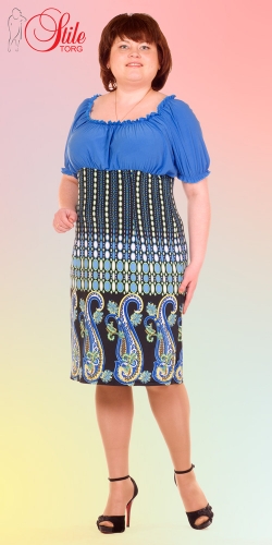 Как известно, женщина должна уметь себя подать. И очень важную роль при этом играет именно одежда. Платье <<Минди>> - из тех моделей, которые подчёркивают женственный силуэт и показывают, что и полные дамы могут прекрасно выглядеть. Слегка облегающий фасон платья и оригинальный и стильный принт сделают фигуру визуально более изящной и скроют проблемные места. А вот однотонный верх и интересный дизайн лифа подчеркнёт ваше главное достоинство - пышный бюст. Нельзя не обратить внимание и на расцветку - преобладающий голубой подойдёт абсолютно всем, к тому же, он невероятно освежает и молодит.